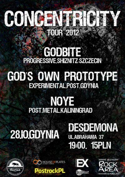 28.10 Gdynia, klub Desdemona, ul. Abrahama 37. W ramach Concentrity Tour, wystąpią 3 awangardowe zespoły rockowe: GODBITE, GOD'S OWN PROTOTYPE, NOYE. Bilety 15 PLN.